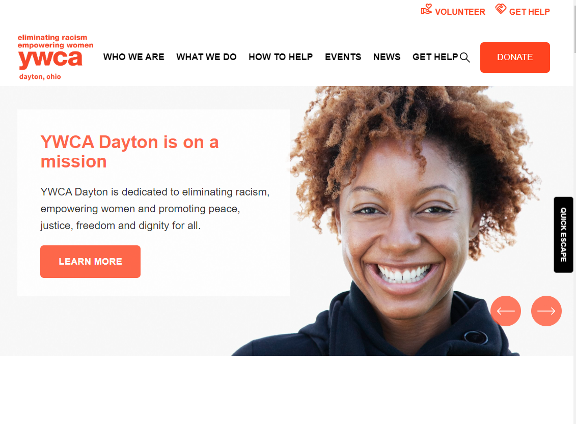 Our new site remains at ywcadayton.org but now has been updated with improved information and an easier layout for visitors to navigate. Please take note of the quick escape button on the site, which can be used to quickly exit out of the site if someone enters the room and you do not wish them to see that you are browsing a website with domestic violence information.